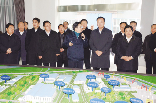 隨后,周春雨、白金明一行又趕赴淮安市,進車間,看項目,問規劃,先后來到淮安特鋼高新產業園、鹽堿科技產業園、淮安科教產業園、淮安生態新城區以及新型工業化成果展示中心進行參觀考察。
